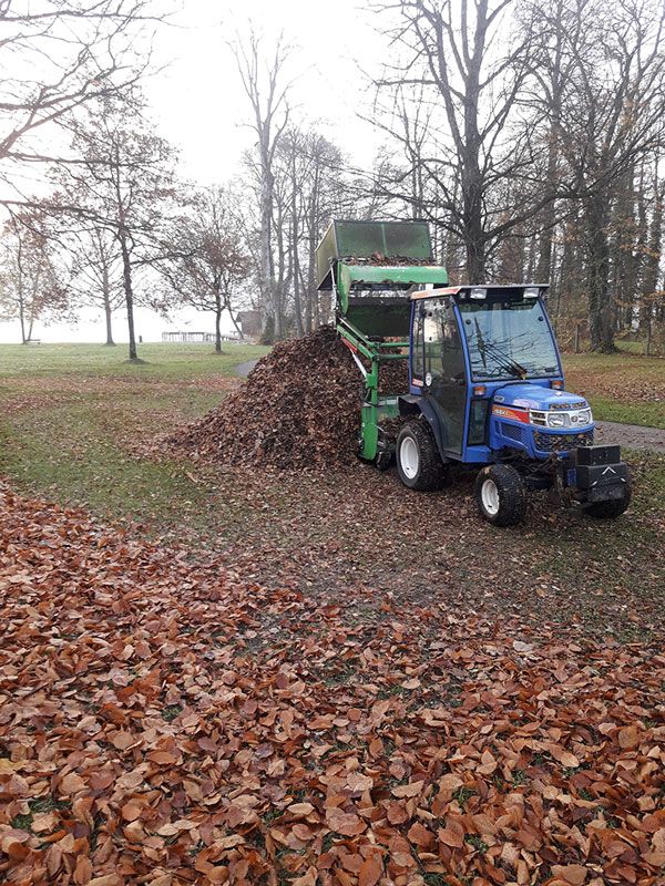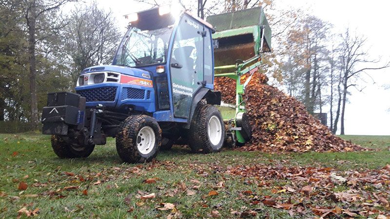Zur Herbstpflege entfernen wir auch das Laub von ihren Grünflächen.