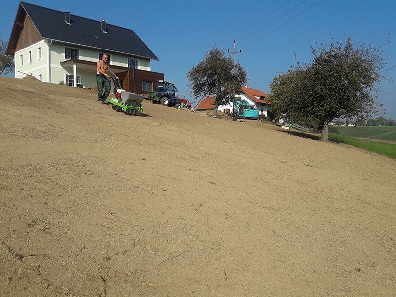 Um den Erdboden vorzubereiten, müssen alte Wurzeln entfernt werden, Komposterde und Rasenbodenaktivator werden ausgebracht. Das Auflockern der Rasenerde hilft den bald keimenden Grassamen dabei, die eigenen Wurzeln schneller in den Boden treiben und besser versorgen zu können, weil sie gut belüftet werden. Vor dem Anlegen einer neuen Grünfläche ist es günstig, den Boden zu verbessern. Danach braucht das Gras regelmäßige Pflege, Rasendünger und eine gute Rasenbewässerung.
